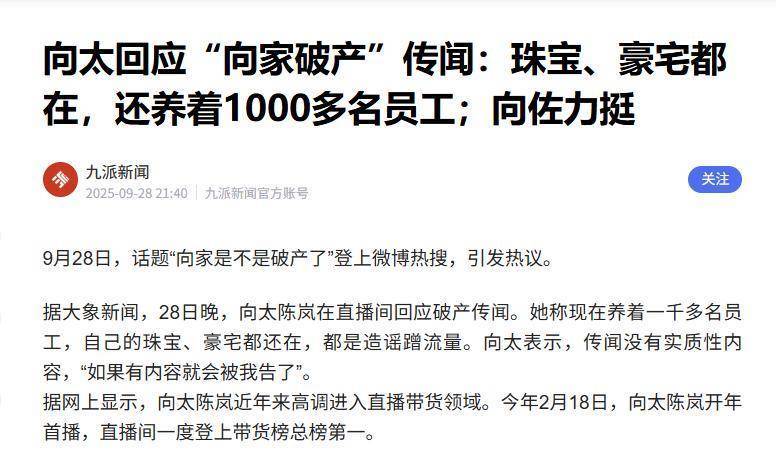 今年9月份,“向家是不是破产了”的话题登上热搜,引发了一大批讨论。